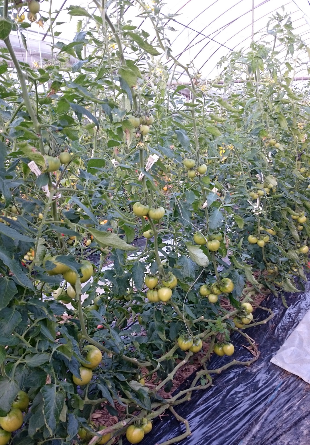 今年からカラ―ミニトマトにチャレンジしています。色は、ブラック、ホワイト、イエロー、オレンジ、グリーンの5色。色着きのピークがそれぞれ違うため、見極めるのが大変です。